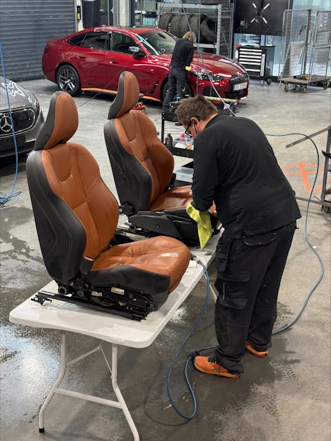 Reperasjon av skinnseter, oppfarging m.m.