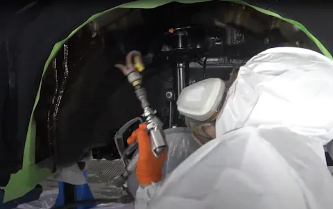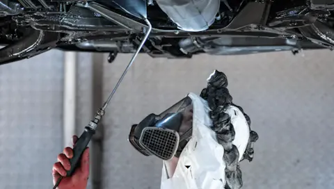 Før sprøyting blir bilens utvendige karosseri dekket med beskyttelsesplast, og bremseskiver dekkes inn med plast. Dette er for å beskytte flatene mot understellsbehandlingen.