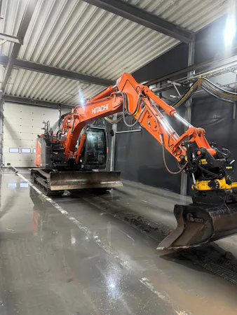 2 stk semihaller med selvvask og maskiner (børster og børsteløs) som kan vaske vogntog helt opp til 26 m.